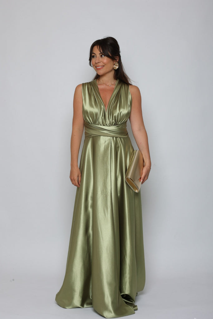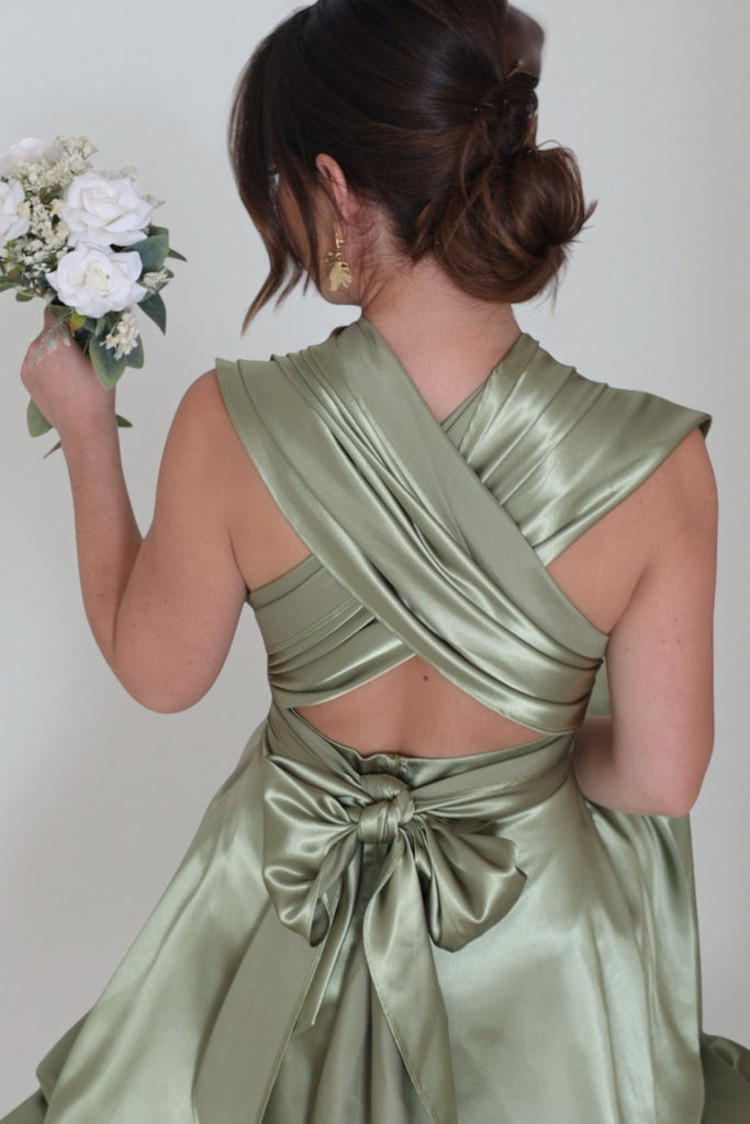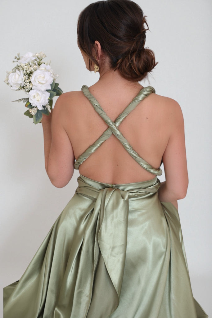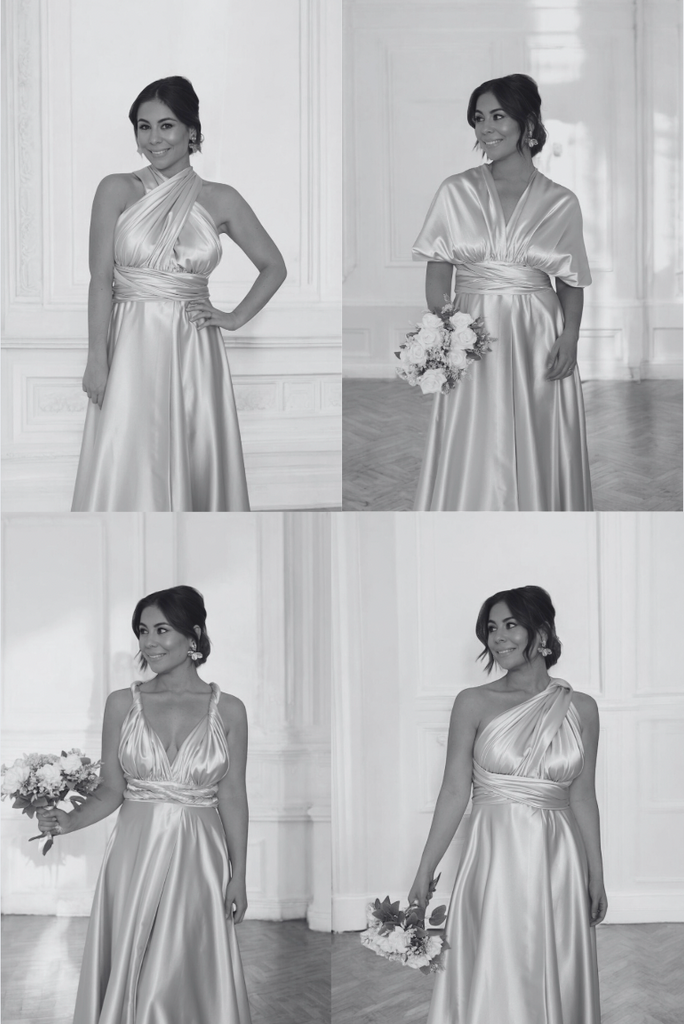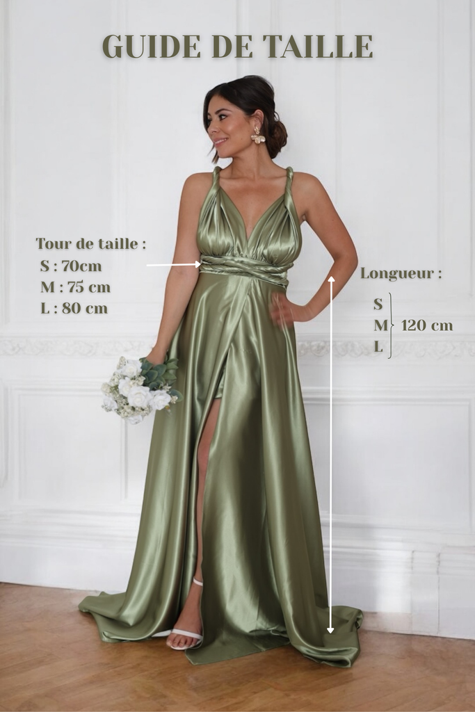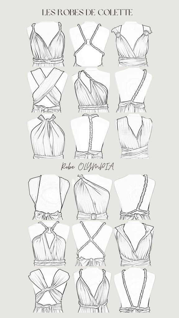 • Robe multi-positions se noue de plusieurs façons, doublée avec une fermeture éclair discrète dans le dos pour ajuster la silhouette