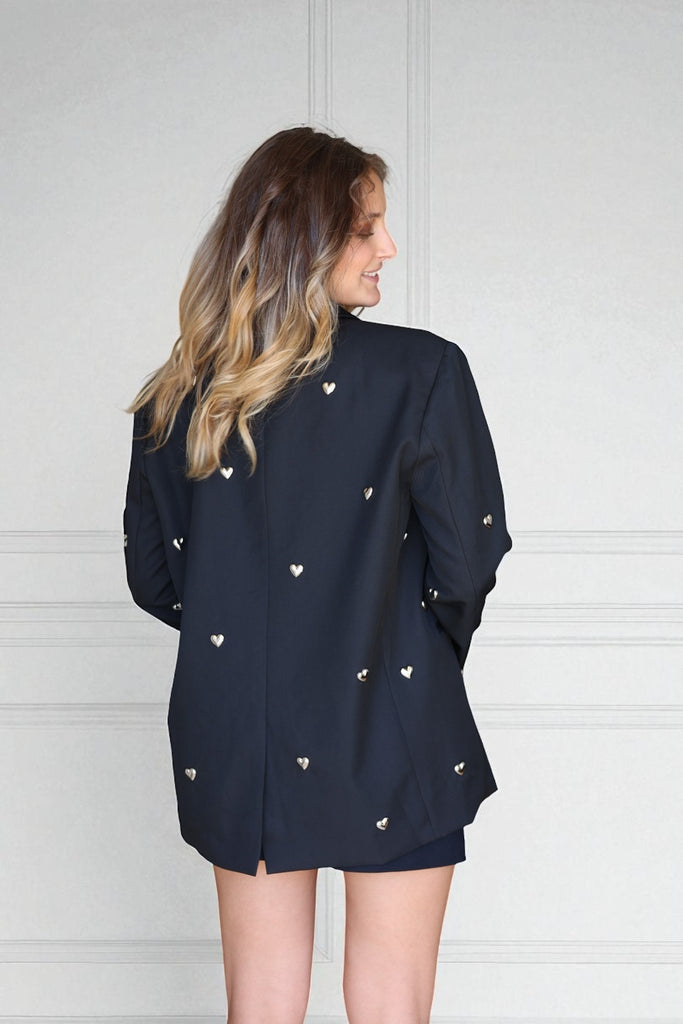 • Blazer noir oversize détails cœurs argentés