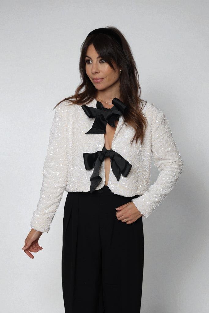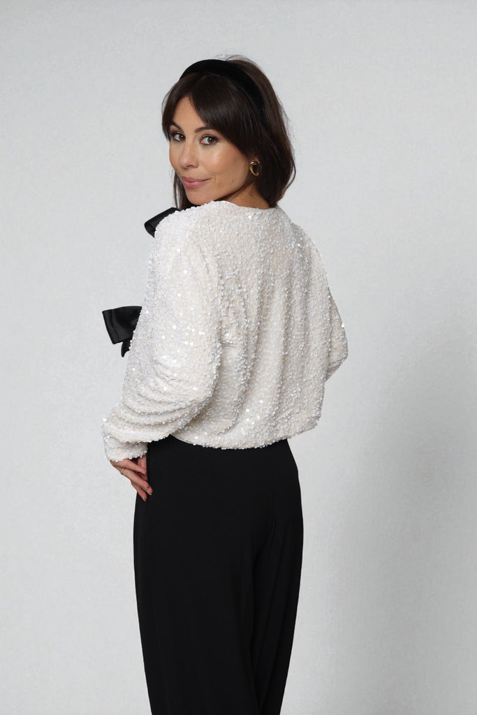 • Gilet à noeud blanc cassé à sequins ,